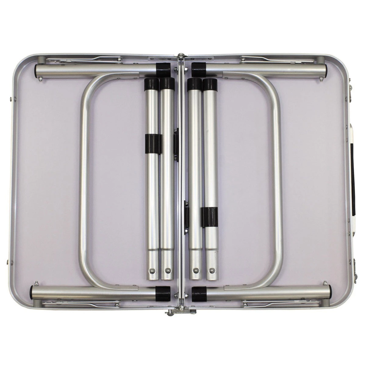 Der Alu Campingtisch von Fox Outdoor besticht durch top Verarbeitung und einem hervorragenden Preis-Leistungs-Verhältnis. Die 2-geteilte Tischplatte und das Alu-Gestell sind klappbar und kann dann bequem am Tragehenkel transportiert und kompakt gelagert werden. Das Gestell kann in 2 Höhen eingestellt werden und so nutzen Sie den Camping Tisch entweder mit Stühlen, oder sitzend am Boden. Die Tischplatte besteht aus einer beschichteten MDF-Platte, die dadurch sehr Schmutzunempfindlich und leicht zu reinigen ist.