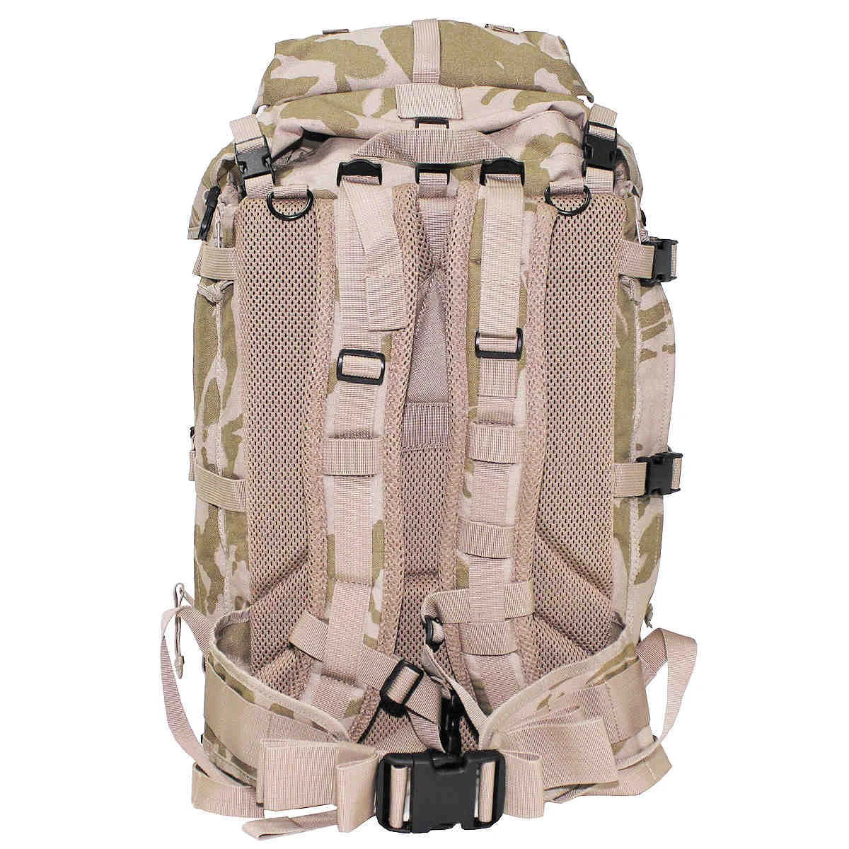 Der Einsatz Rucksack Bowman Manpack Radio Carrier MK II in dpm-desert stammt aus einer Überproduktioon der brit. Armee. Der Original Miltärrucksack bietet auch hervorragende Möglichkeiten auch für den zivilen Einsatz. Das Highlight des Rucksacks sind die ingesamt 4 seitlichen Reißverschlüsse (je Seite 2). Über die 2 vorderen Reißverschlüsse lässt sich das Rucksack-Volumen um ca. das doppelte Vergrössern indem diese geöffnet und die darin verstauten Aussenstoffe aufgeklappt werden. Mit den 2 hinteren 2 Reißverschlüsse kann das hintere Hauptfach komplett geöffnet werden. Verschiedenste Fächer und Zusatztaschen sorgen für eine absolut geniale Übersicht und Ordnung im Rucksack.