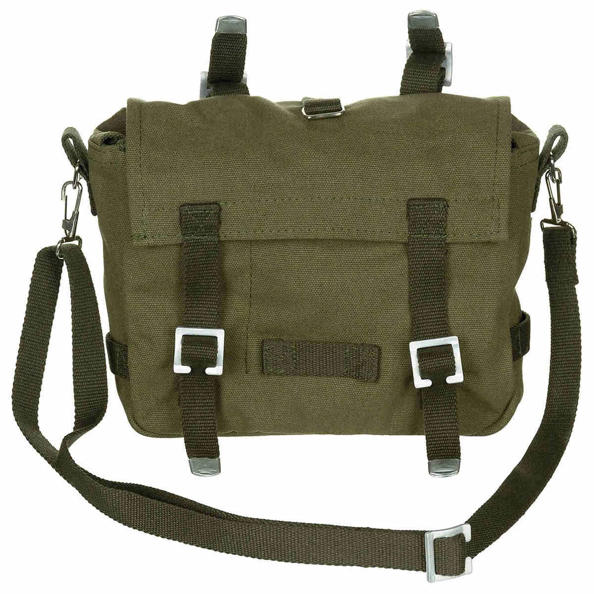 Die kleine BW Kampftasche (Brotbeutel) als Umhängetasche in 100% CANVAS (dicke Baumwolle). Die praktische Schultertasche im schlichten Design ist durch die hochwertige Verarbeitung enorm robust und bietet ausreichend Platz für die wichtigen Dinge. Alternativ kann der Schulterriemen entfernt und die Tasche über die Schlaufen an einer Koppel oder am Gürtel befestigt werden.