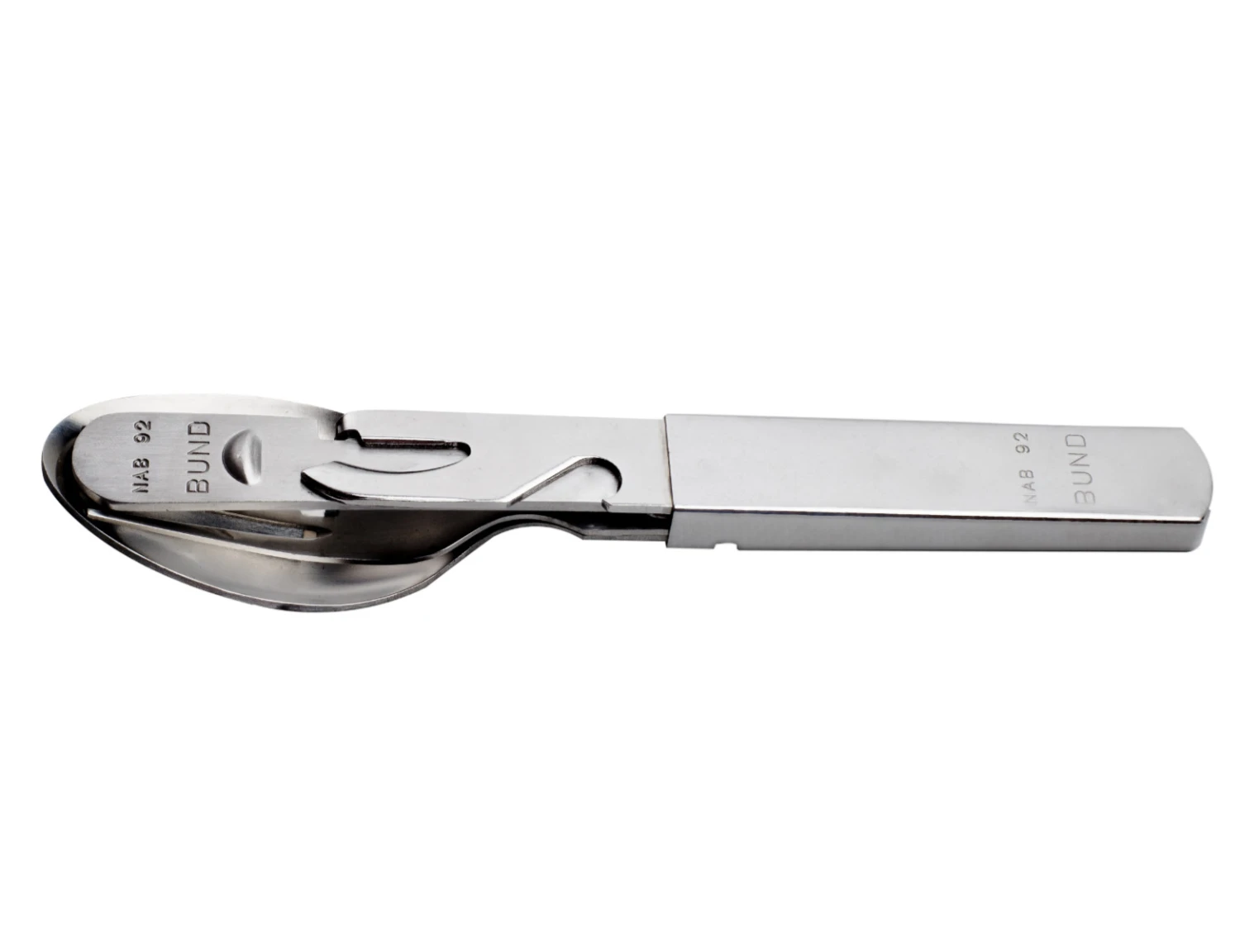 Das BW Feldbesteck ist das praktische Essbesteck für Unterwegs. Das 4-tlg. Feldessbesteck in schwerer, extra stabiler Ausführung besteht aus Messer, Gabel, Löffel und Spezialhalterung mit Flaschen- und Büchsenöffner, die platzsparend zusammen gesteckt werden können. Mit diesem Reisebesteck ist alles kompakt und sicher dabei, was für eine Mahlzeit gebraucht wird. Hinterher lässt sich jedes Einzelteil leicht wieder reinigen. Das Besteck ist aus rostfreiem Edelstahl gefertigt.