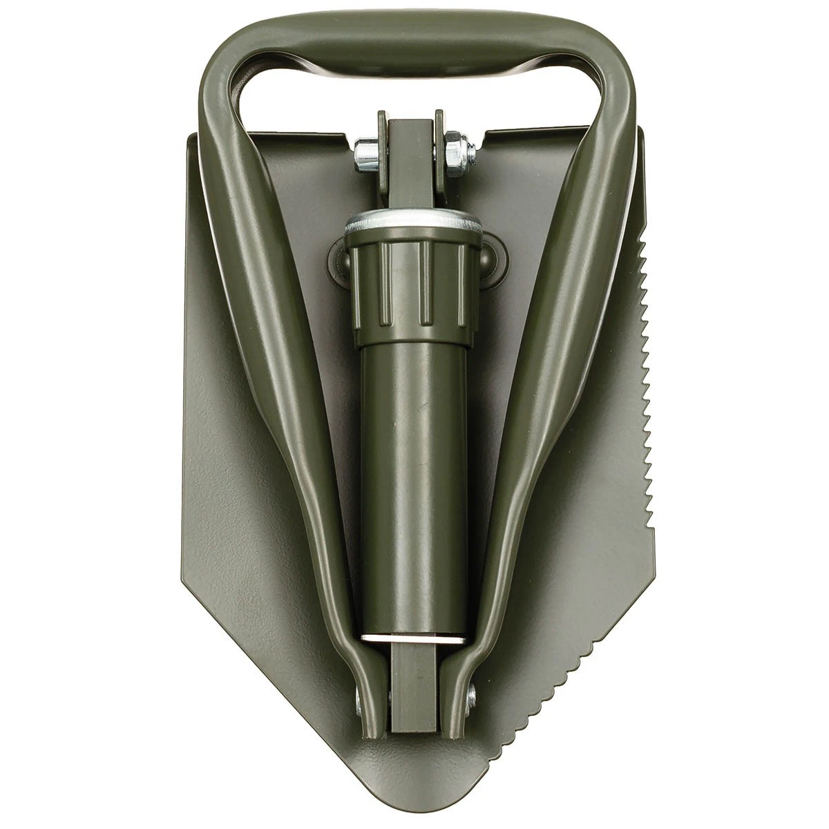 Der praktische BW Outdoorspaten mit Sägekante wird mit original BW Klappspaten-Tasche geliefert. Die 3-fach klappbare Metall Spaten lässt sich dabei platzsparend zusammefalten und in der Tasche verstauen. Durch die Fixierschraube kann das Spatenblatt auch im 90° Winkel eingestellt werden, so dass der Klappsaten dann als Hacke dient. Der unverwüstliche Helfer gehört zu jeder Campingausrüstung, kann aber auch daheim für die Gartenarbeit super verwendet werden. Über die Trittkante kann der Spaten auch bei hartem Boden gut ins Erdreich gedrückt werden. Über die Sägekante am Spatenblatt lassen sich auch kleinere Äste durchsägen und somit bequem Brennholz machen.