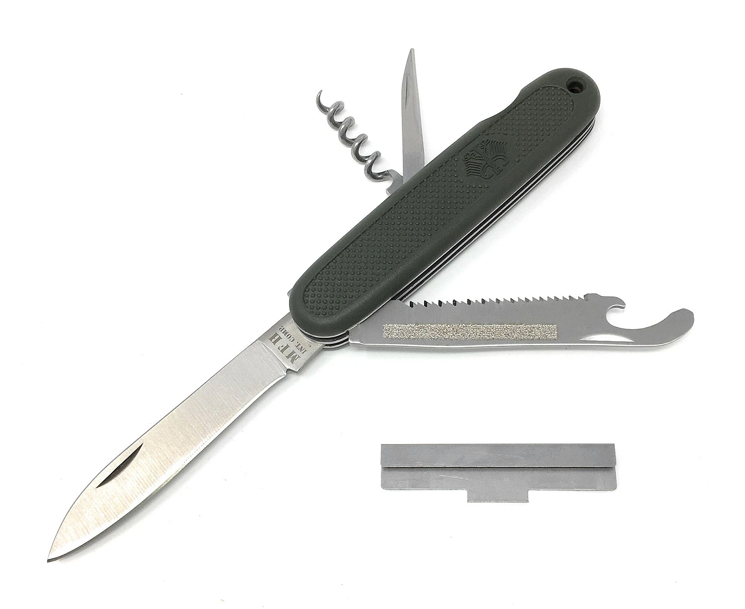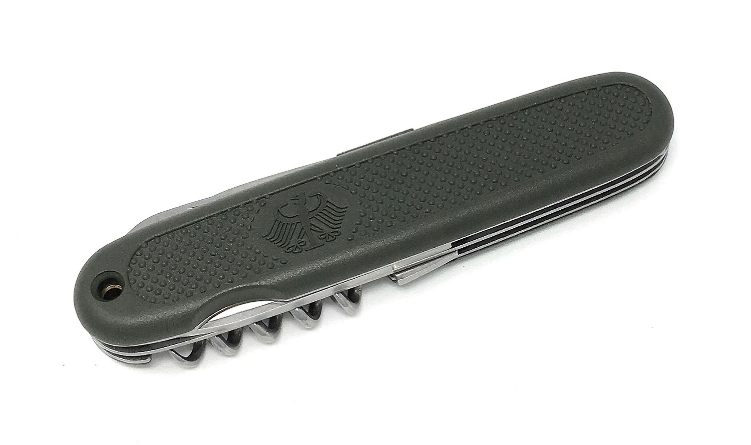 Das klassische BW Taschenmesser mit praktischen Werkzeugen wie Messer, Säge, Schraubendreher, Flaschenöffner usw.