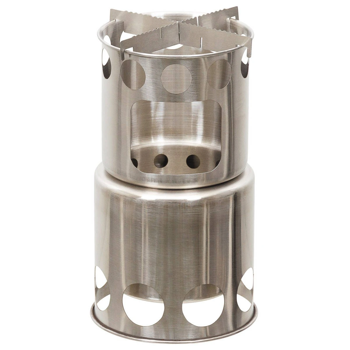 Mit dem kompakten Camping Kochsystem Travel von Fox Outdoor packen Sie ihre kleine Outdoorküche in den Rucksack. Alle Teile sind aus rostfreiem und pflegeleichtem Edelstahl gefertigt und können sehr platzsparend ineinander gestapelt werden. Der Outdoor Ofen besitzt eine Grösse von 20x11cm und kann mit allen möglichen Brennstoffen gefüllt und beheizt werden. Die durchdachte Bauart läst die Luft hervorragend Zirkulieren und gibt die Hitze nahezu Verlustfrei auf Pfanne oder Topf ab.