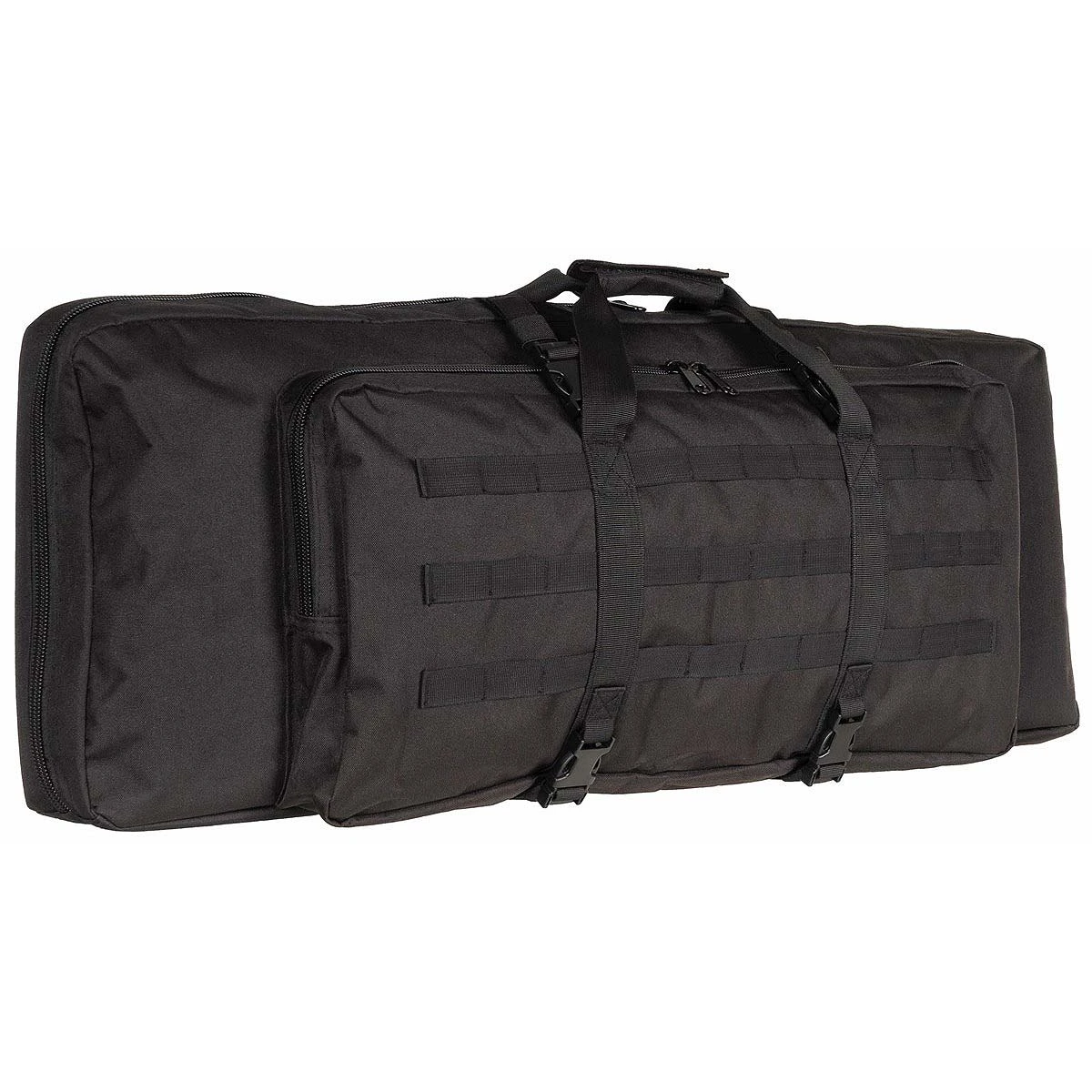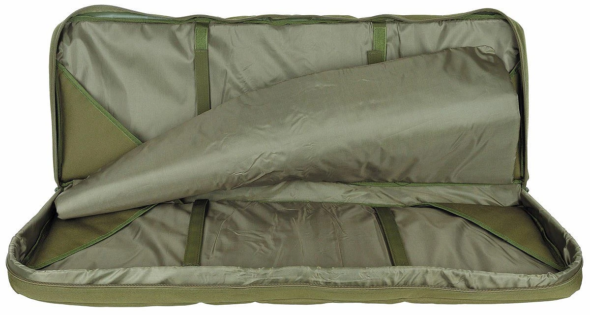 Das geräumige Doppel Gewehrfutteral von MFH fasst mit seiner Gesamtlänge von 95cm problemlos 2 Langwaffen mit Schalldämpfer oder Zielfernrohr. Das umlaufend gut gepolsterte und widerstandsfähige Polyester sorgt für eine stoßfeste und robuste äußere Beschaffenheit der Gewehrtasche. Die weiche Innenseite mit ebenfalls gepolsterter Trennwand schützt die Waffen vor Schäden und Kratzer. Zudem bietet das Futteral eine große aufgesetzte Außentasche für Munitionsetui oder sonstiges Jagdzubehör. Zusätzlich ist die Außentasche mit Molle-Schlaufen versehen um das Gewehrfutteral zusätzlich mit Molle-Taschen aus unserem Sortiment zu erweitern. Alle Reißverschlüsse der Tasche sind Doppelreißverschlüsse, so dass die einzelnen Fächer per Vorhängeschloss abschließbar sind.