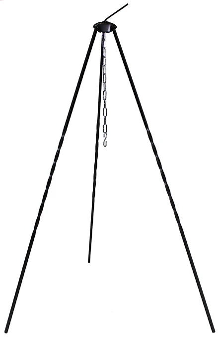 Der Dreibein für Gulaschkessel von Fox Outdoor mit einer Höhe von 1,0m aus Stahl in schwarzer Lackierung. Die Beine sind in sich verdreht und garantieren so einen stabilen Stand. Durch einen Drehteller oben kann der Anhang der Kette (Gulaschkessel, Grillpfanne) gedreht werden um eine optimale Hitzeverteilung zu gewährleisten.