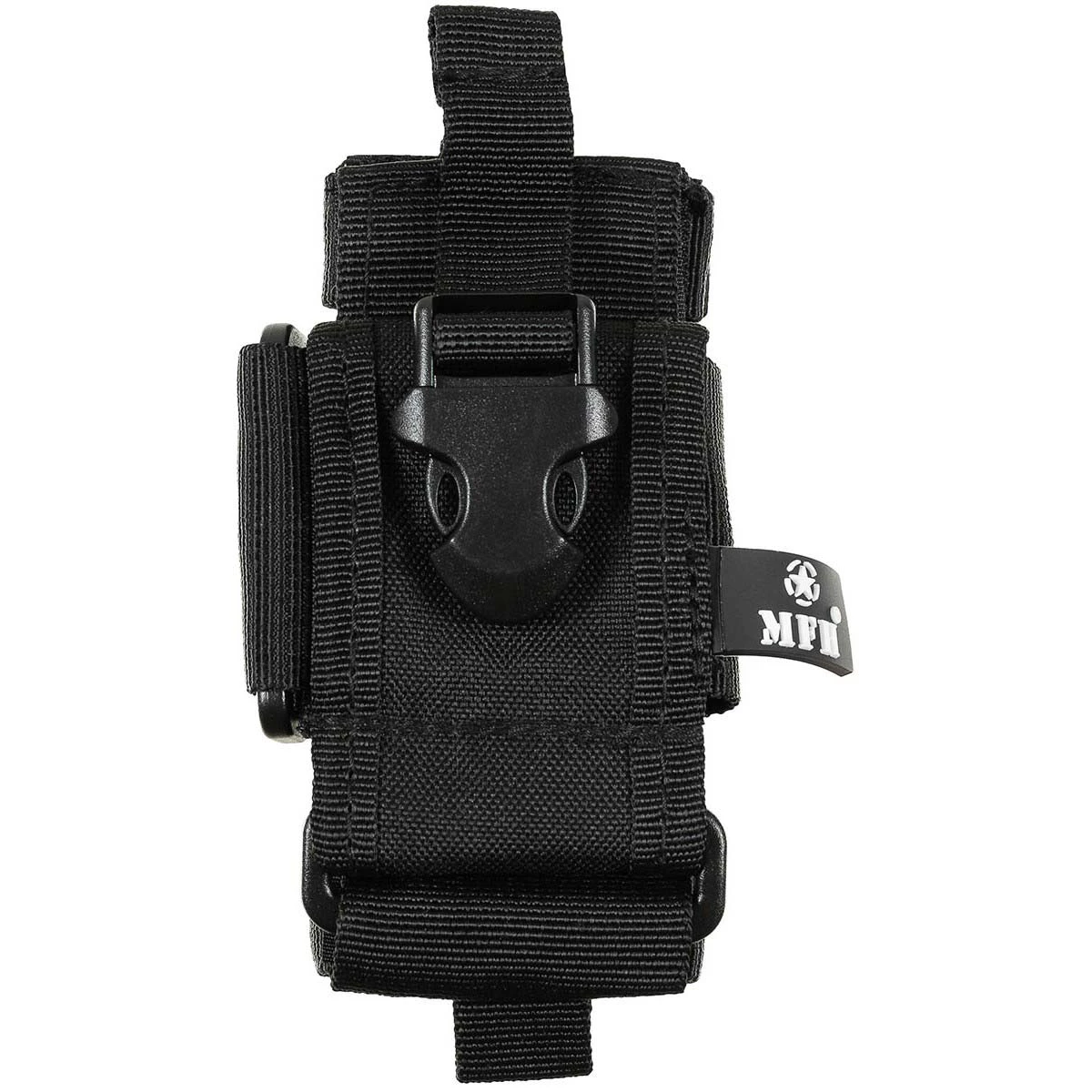 US Handytasche aus Polyester für das Molle Modular-System in der Grösse von 12x6cm. Dank 2 verstellbare Klettbänder lässt sich die Tasche nahezu an jedes Handy anpassen und sorgt für sicheren Halt. Durch 2 verstellbare Clipverschlüsse kann die Tasche nicht nur an einen Molle-Träger, sondern auch an Gürtel o.ä. angebracht werden. Anzubringen mit elastischer Halteschlaufe an die Aufnahmeschlaufen der Molle Träger wie Westen, Rucksäcke usw.