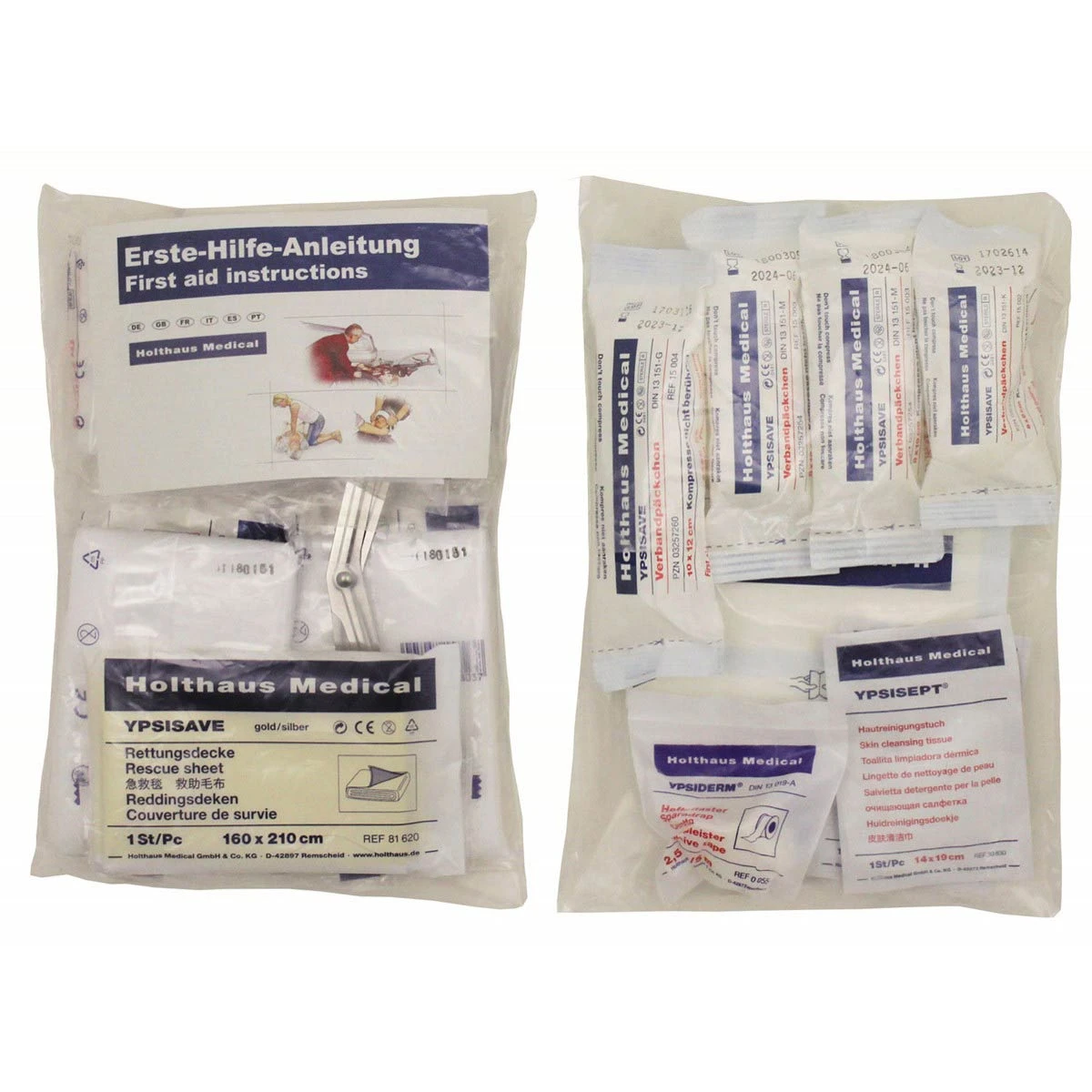 Das Erste-Hilfe-Set 43-teilig von Holthaus Medical ist das ideale Verbandskasten Nachfüllset für ihren PKW oder auch für Zuhause. Ob im klassischen Koffer, in der Verbandstasche, im Verbandskasten oder im Verbandsschrank in der Hausapotheke, bei hin und wieder notwendiger Nutzung ist das Erste-Hilfe-Material mit der Zeit aufgebraucht. Das umfangreiche Set von Holthaus Medical ist das ideale Set zum Nachfüllen oder Komplett-Tausch. Dieses Verbandsset ist geprüft nach DIN 13157 und damit passend für alle Erste-Hilfe-Koffer im PKW und Verbandsschränke nach DIN 13157.