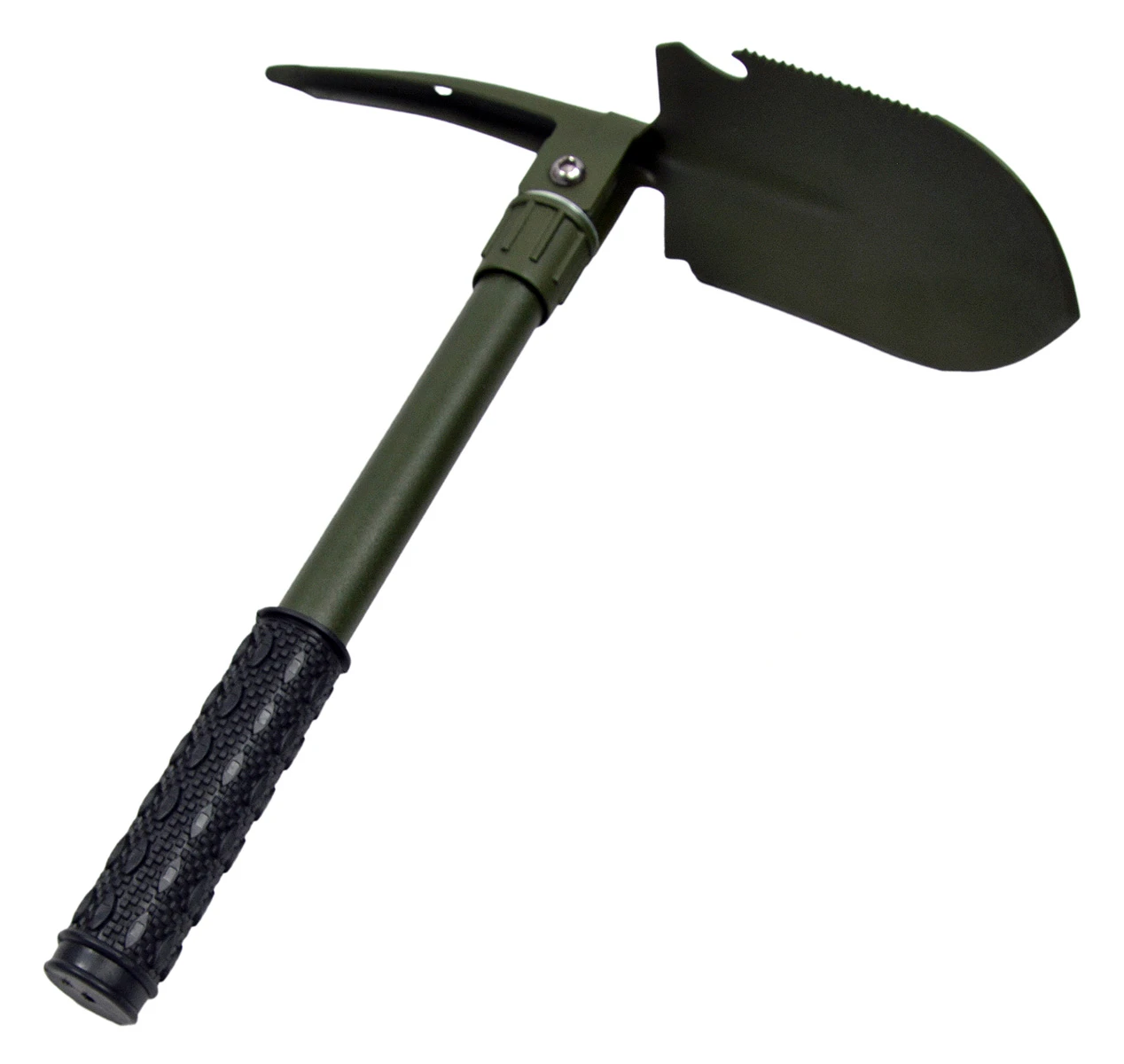 Dieser Multifunktions- Klappspaten von A. Blöchl passt und gehört in jeden Outdoor- und Fluchtrucksack. Über einen Schraubverschluss kann der klappbare Outdoor Spaten an verschiedenen Positionen arretiert werden. Im 90°-Winkel eingestellt haben sie die Hack-Funktion zum lockern oder eben richten des Bodens, komplett geöffnet dient das Schaufelblatt zum aushebeln des Erdreichs. Zusätzlich ist die Seite des Spatenblattes mit einem Flaschenöffner und einer Säge-Zahnung versehen mit der Beispielsweise kleinere Äste für Brennholz gesägt werden können. Eine stabile Trittkante am Schaufelbattende sorgt dafür, dass das Schaufelblatt mit dem Fuß gut in den Boden gedrückt werden kann.