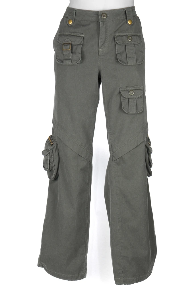 Die Cargohose ist mit vielen aufgesetzten Taschen ausgestattet.
