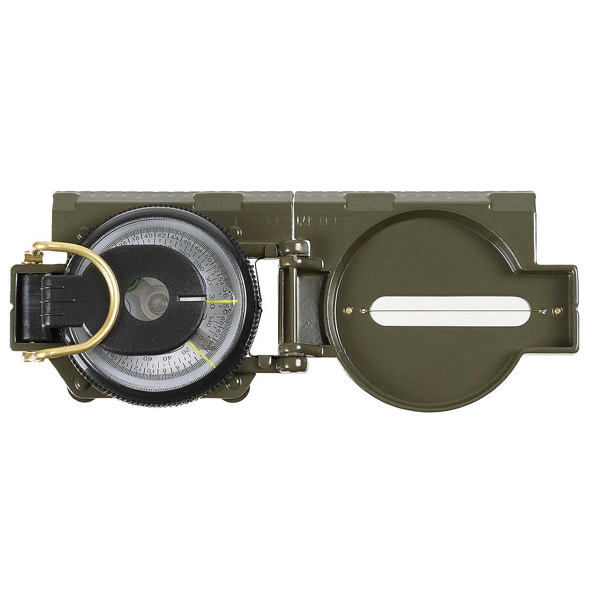 US Army Ranger Kompass in stabilem Metall Gehäuse. Das Gehäuse besitzt eine Anlegekante mit Maßeinteilung in 1:25000 zum abmessen auf der Karte. Im Sucher befindet sich ein Vergrösserungsglas zum einfacheren Justieren der Richtung.