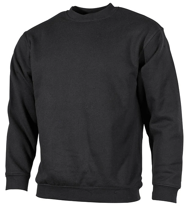 Leger geschnittenes Sweatshirt Basic von MFH in schwarz. Der bequeme Pullover mit elastischen Rippstrickbündchen an Ärmel und Bund. Die innen weich angerauhte Oberfläche sorgt für einen hohen Tragekomfort. Perfekt geeignet für Freizeit, Hobby und Beruf.