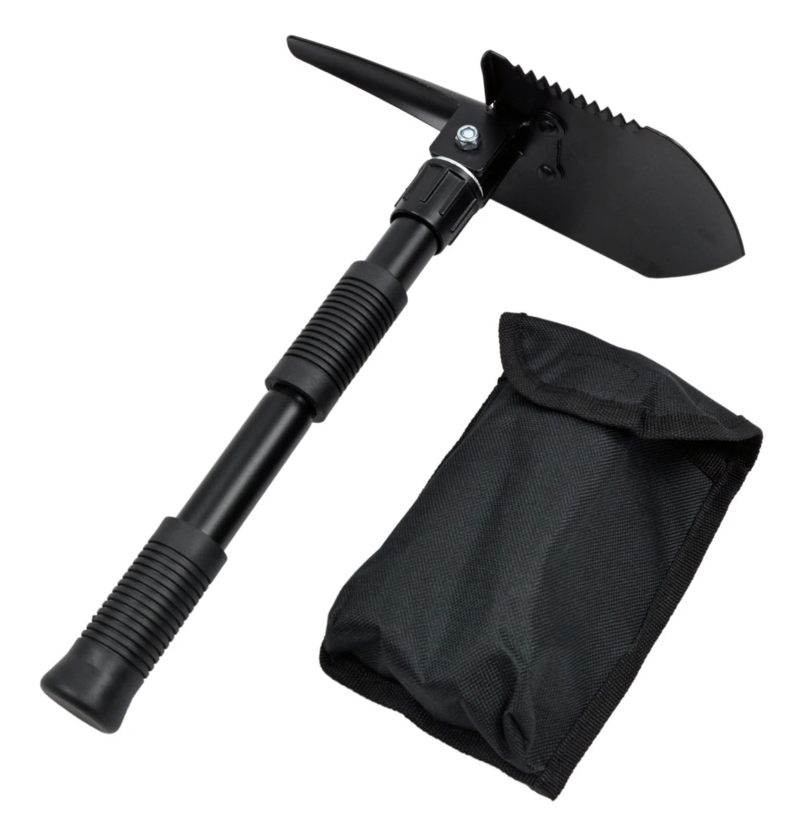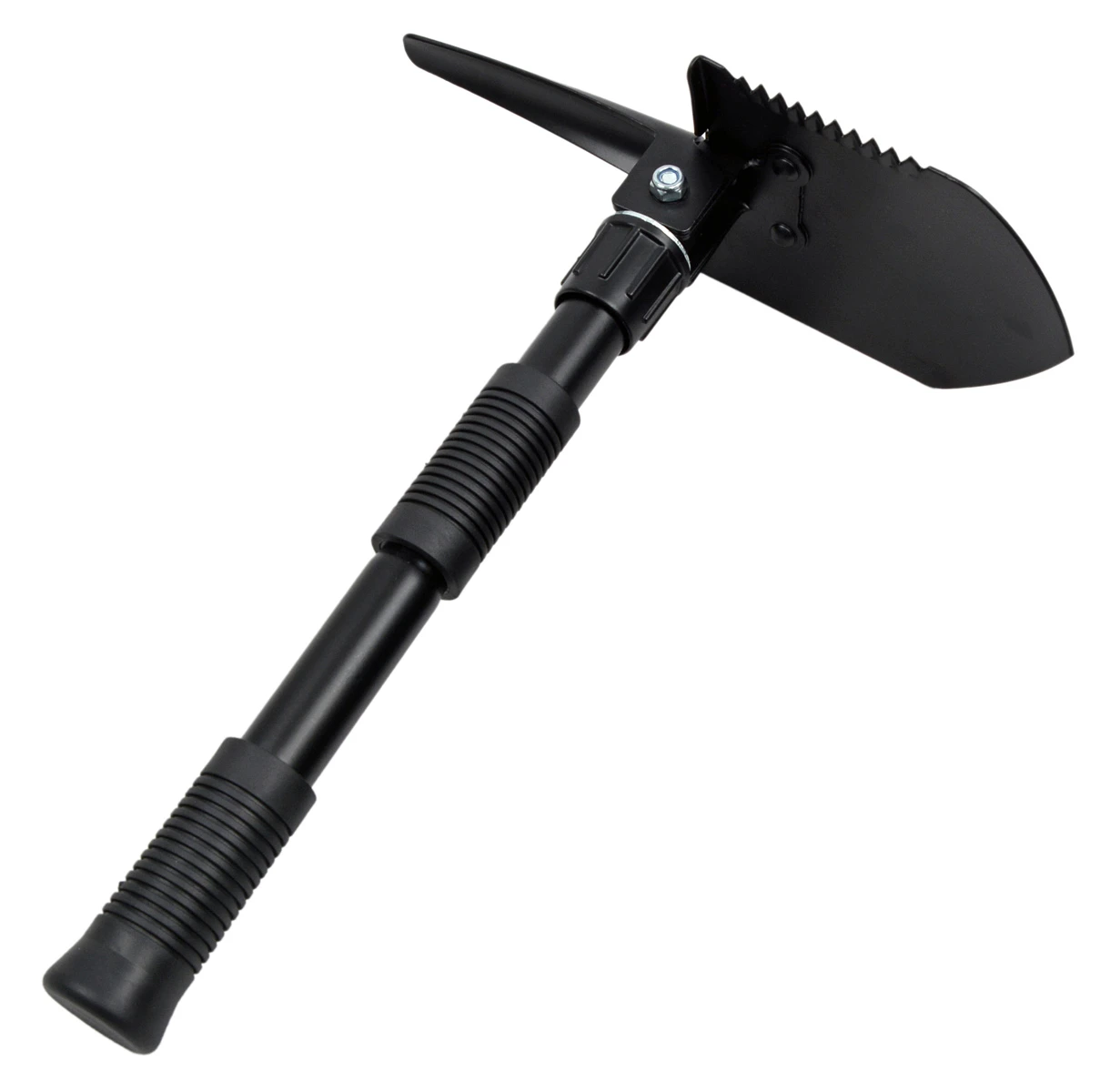 Dieser Multifunktions- Mini Klappspaten von A. Blöchl passt und gehört in jeden Outdoor- und Fluchtrucksack. Über einen Schraubverschluss kann der klappbare Outdoor Spaten an verschiedenen Positionen arretiert werden. Im 90°-Winkel eingestellt haben sie die Hack-Funktion zum lockern oder eben richten des Bodens, komplett geöffnet dient das Schaufelblatt zum aushebeln des Erdreichs. Zusätzlich ist die Seite des Spatenblattes mit einem Flaschenöffner und einer Säge-Zahnung versehen mit der Beispielsweise kleinere Äste für Brennholz gesägt werden können. Besonders durchdacht ist auch der aufschraubbare Gummigriff für besonders guten Halt und die Trittkante am Schaufelbattende, damit das Schaufelblatt mit dem Fuß gut in den Boden gedrückt werden kann.