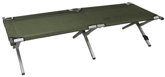 Original Feldbett der britischen Armee. Das Feldbett ist mit einem extrastabilem Aluminium Rahmen und hochwertigem Nylonbezug ausgestattet.