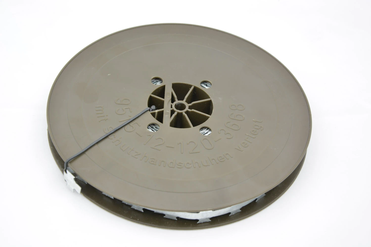 Der Original Bundeswehr Band-Klingendraht, auch S-Draht genannt, ist die Weiterentwicklung des Standard Bandstacheldrahtes. Die Stacheln des Stacheldrahtes sind hier mit scharfen Metallklingen ersetzt und hat vor allem die Aufgabe, ein unerlaubtes Passieren von Personen zu verhindern bzw. zumindest stark zu erschweren. Der Natodraht ist aufgrund der rasiermesserähnlichen Schneiden wesentlich gefährlicher und kann stärkere Verletzungen als Stacheldrahtdornen verursachen.