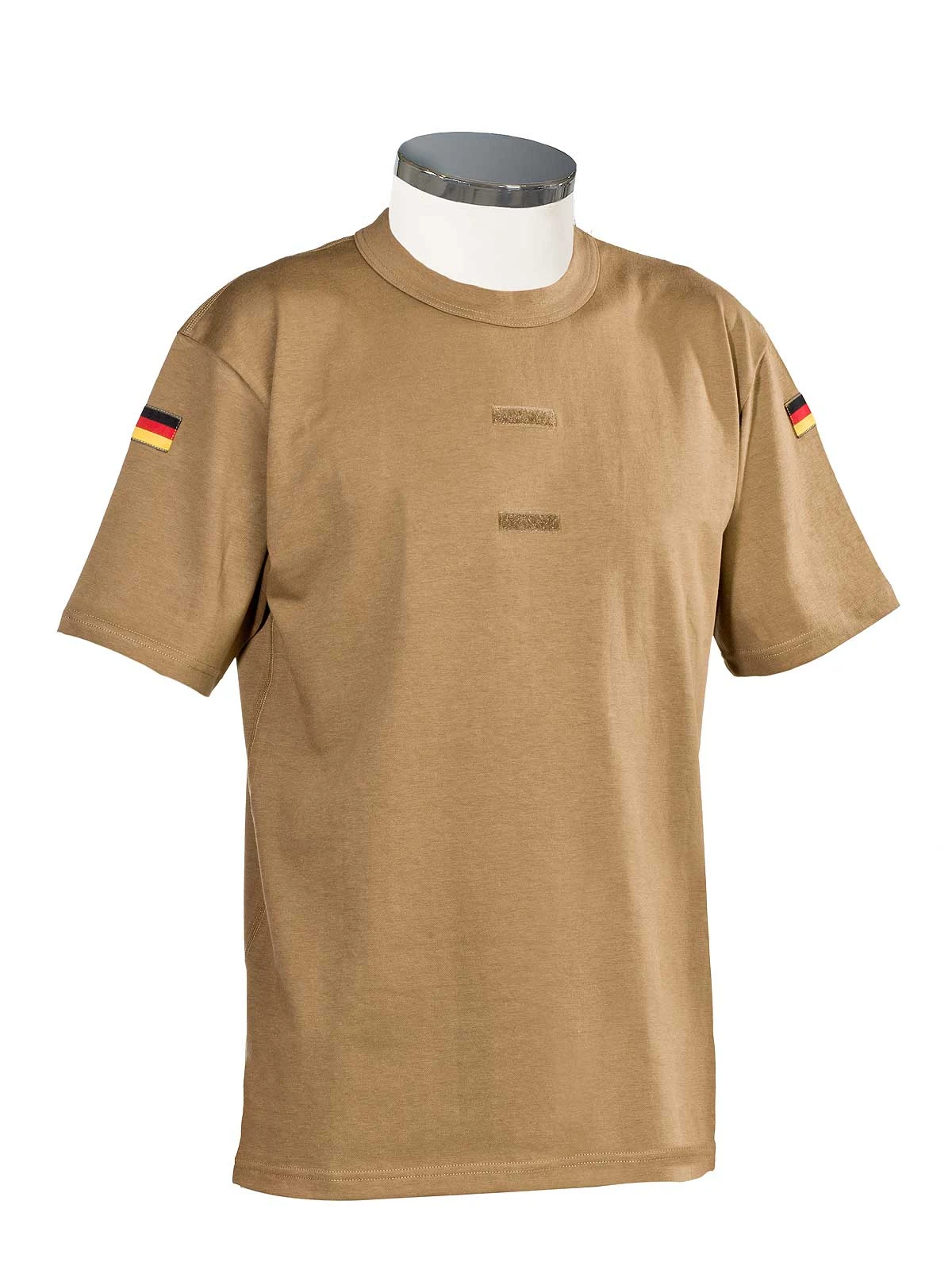 Das Original Bundeswehr Unterhemd mit Klettstreifen in der Farbe khaki. Das kurzärmelige Unterhemd in Tropenausführung hat ein zweiflächiges Gestrick für den optimalen Feuchtigkeitsabtransport von innen nach außen. Somit bleibt. Das Shirt hat einen Rundhals Ausschnitt mit Börtchen. An den Ärmeln befindet sich das Hoheitsabzeichen. Auf der Brust befinden sich 2 schmale Streifen mit Haftverschluss zum Befestigen von Dienstgradabzeichen (Aufschiebeschlaufen). Als Unterhemd oder T-Shirt tragbar.