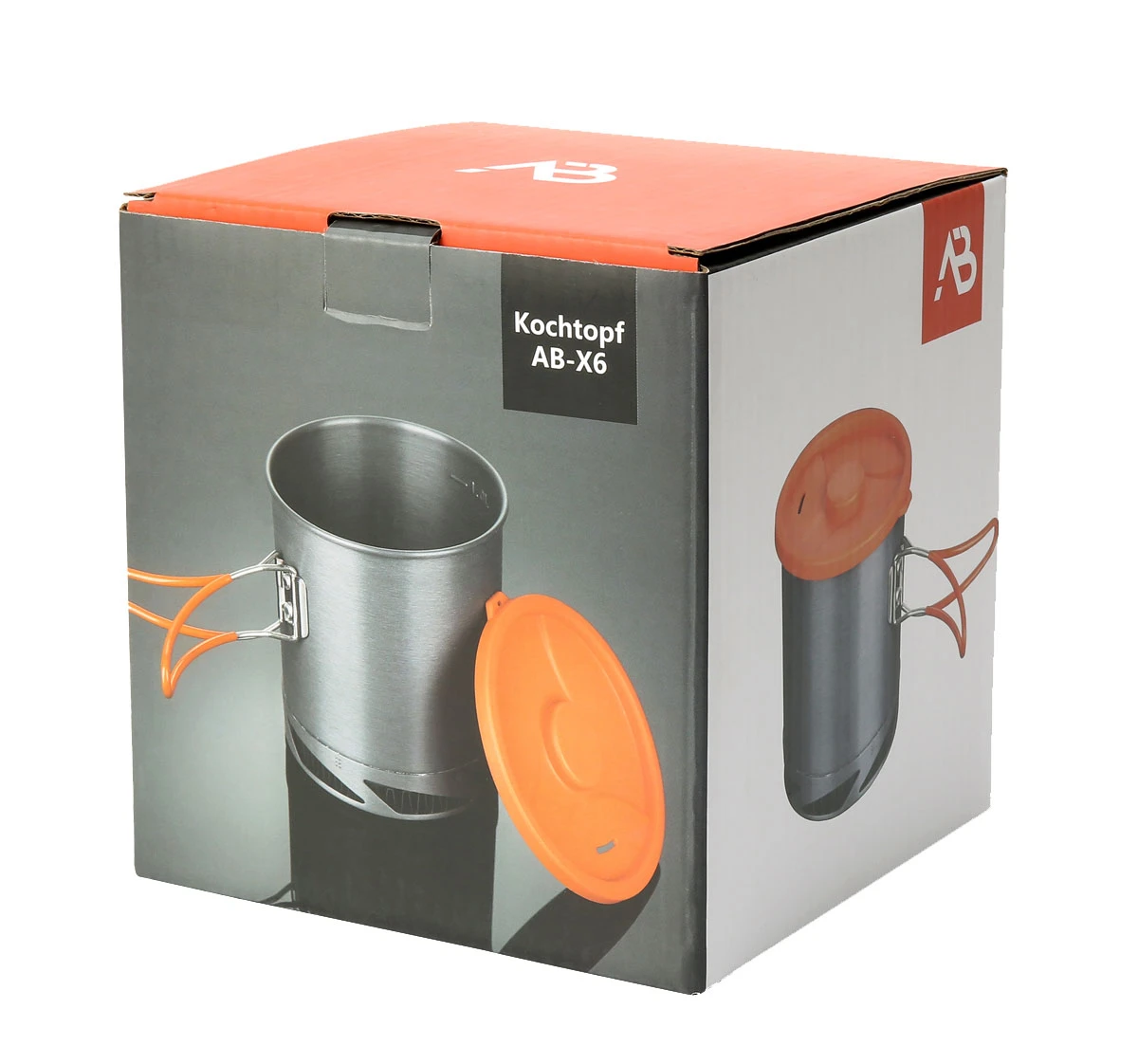 Der Camping und Outdoor Kochtopf AB-X6 Xpress mit 1 Liter Fassungsvermögen von Blöchl ist mit einem Heat Exchanger (Wärmetauscher) ausgestattet, der den Wirkungsgrad der Brennerflamme enorm erhöht und die Kochzeit dadurch stark verkürzt. Bei normalen Töpfen wird ein Großteil der Hitze oft nutzlos am Topf vorbei geführt. Beim Kochtopf AB-X6 Xpress staut sich die Hitze zwischen den Lamellen und wird durch die größere Übertragungsfläche optimal in den Topf geführt. Neben der Zeit spart man somit auch bis zu 2/3 an Brennstoff gegenüber herkömmlichen Töpfen. Im Inneren des Topfes vereinfacht eine Skalierung in 250ml Stufen das Portionieren. Der Deckel ist mit einer Trinkvorrichtung versehen und die klappbaren Griffe verfügen über eine Silikonbeschichtung zur besseren Handhabung.