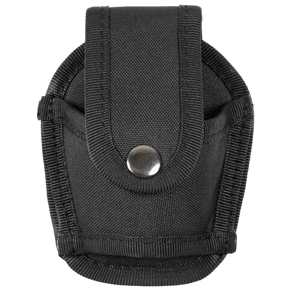 Die offene Variante des Security Handschellen Etui von MFH mit Druckknopf Verschluss. Das Handschellenetui ist für nahezu alle gängingen Handschellen geeignet. Die Gürtelschlaufe ist für Gürtel/Koppel bis 6cm Breite geeignet.