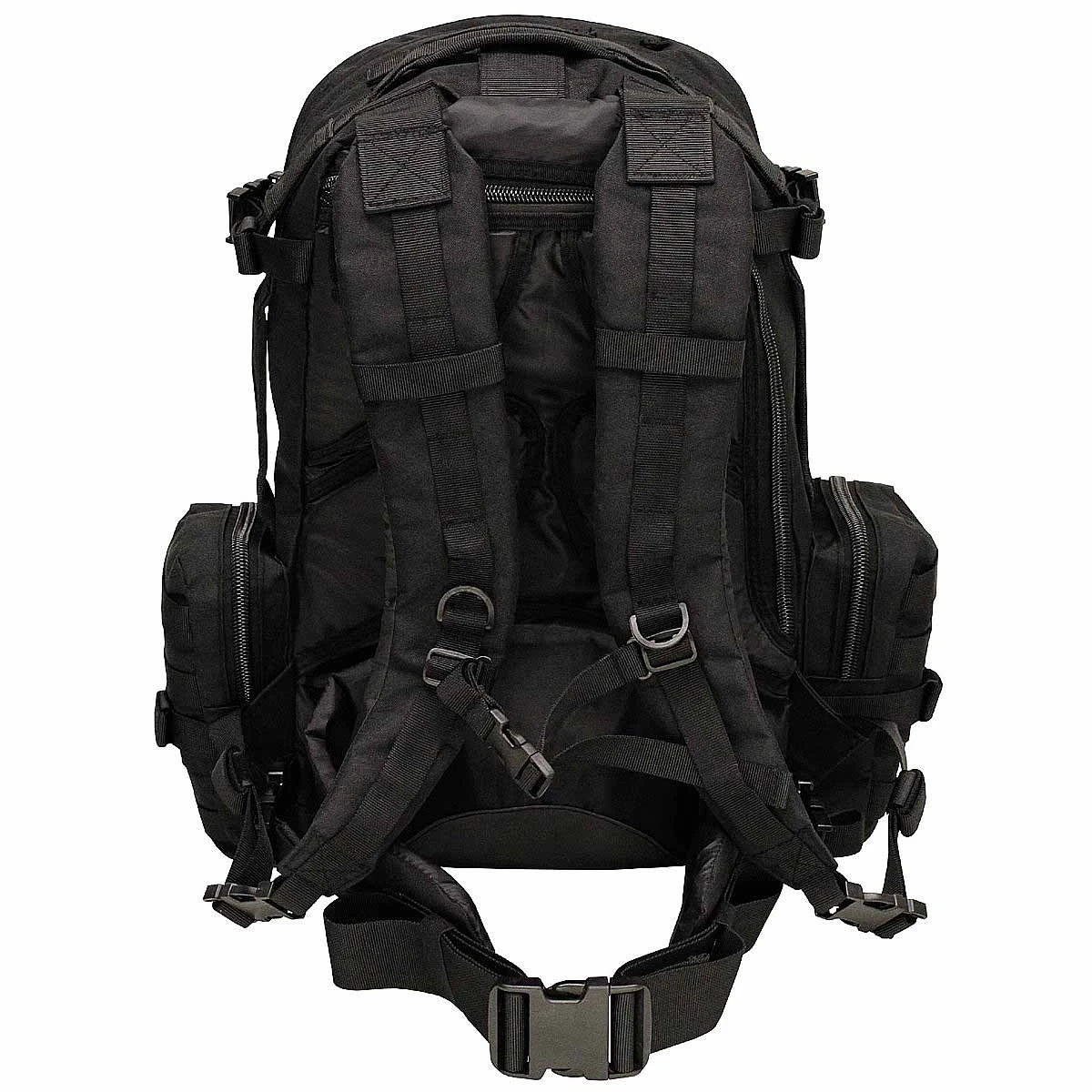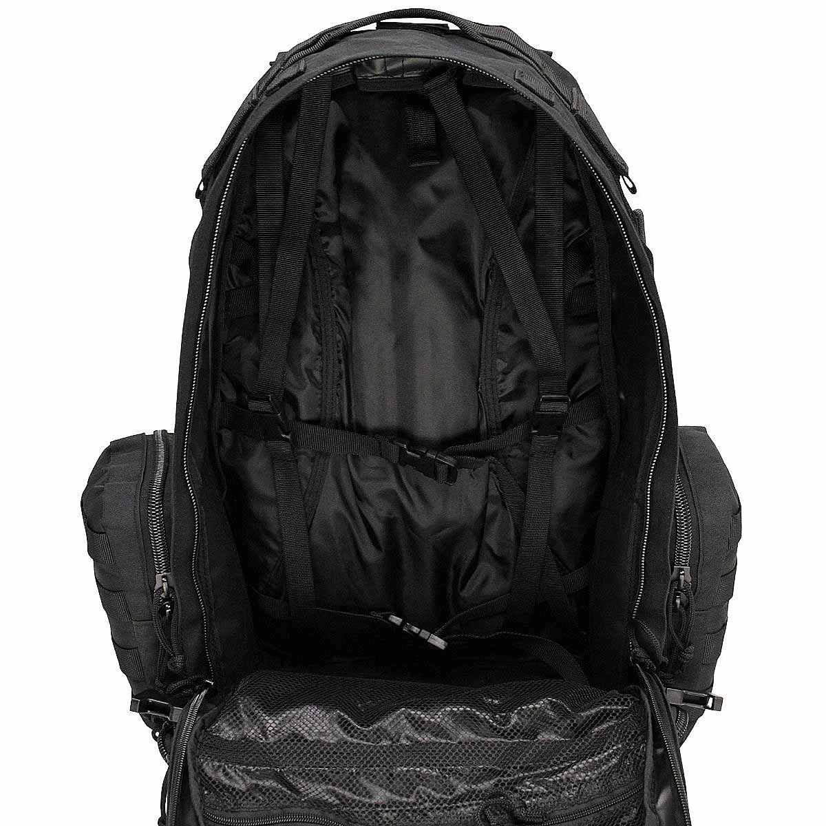 Der Tactical Rucksack 5 Full Modular von MFH ist dank seiner Modularen Bauweise sehr vielseitig einsetzbar. Zusätzlich bieten die vielen Molle-Schlaufen genug Spielraum um den Rucksack weiter zu personalisieren und an den eigenen Geschmack und Einsatzzweck zu erweitern. Vor allem das sehr überlegt gestaltete, und komplett aufklappbare Hauptfach lässt kaum Wünsche offen. Hierin sind Öffnungen Trinkschlauch, Gerätekabel, integrierte Kompressionsriemen und mehr verbaut. Neben dem großen Hauptfach stehen 4 weitere kleine Taschen im Seiten- und Frontbereich ur Verfügung. Der Rücken und der Hüftgurt sind sehr gut gepolstert, so dass auch längere Touren mit viel Gewicht bequem und rückenschonend möglich sind. Insgesamt verfügt der Rucksack über 45 Liter Fassungsvermögen für verschiedene Utensilien und Ausrüstungsgegenstände.