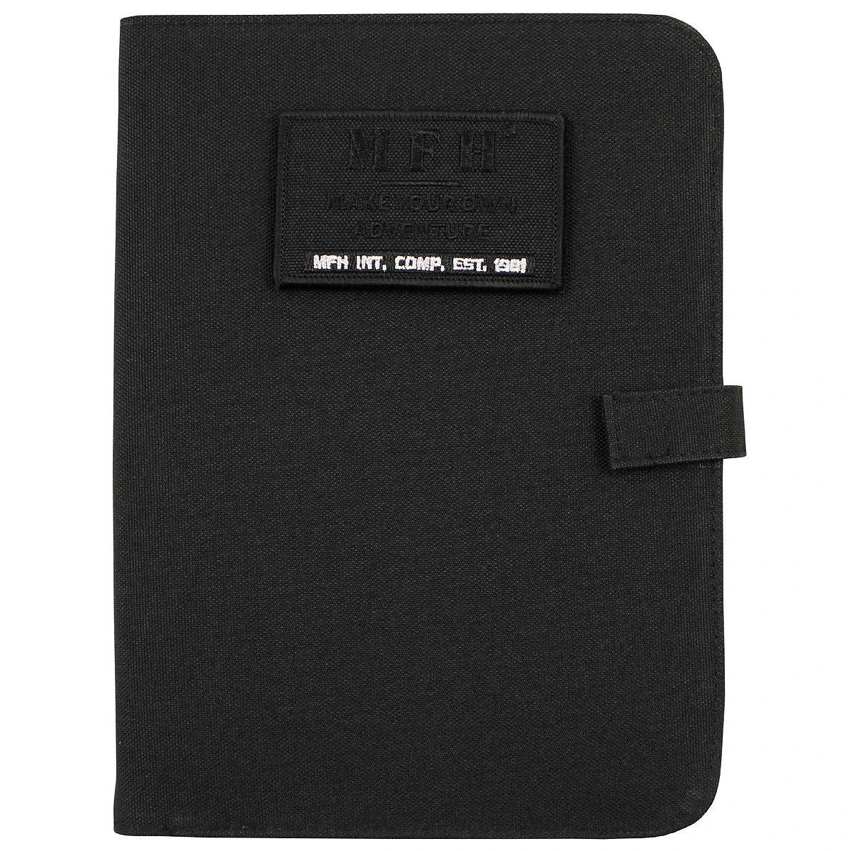 Die Tactical Schreibmappe im DIN A5 Format mit stabiler Einfassung ist die kompakte Tactical Mappe für Unterwegs. Die Mappe ist mit linearen Notitzblätter bestückt. Diese dienen als Terminplaner für Notitzen oder auch zum aufskizzieren von taktischen Vorgaben für Ihre Einsatzkräfte oder Arbeiter. Die stabile Vorder- und Rückseite ist zugleich die passende Schreibunterlage. Der abnehmbare MFH-Patch kann durch Ihr Truppen- oder Firmenlogo ersetzt werden. Mehrere Einschubfächer und Stiftehalter komplettieren die gut durchdachte Mappe.