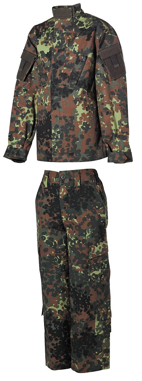 Der US Army Kinder Tarnanzug von MFH in hochwertigem Ripstop Material. Der Anzug ist nahe dem Original sehr hochwertig verarbeitet mit feinsten Details. Die Jacke ist unter anderem mit vielen Taschen, Ellenbogenverstärkung und mehreren Klettflächen ausgestattet. Die Hose ist am Bund mit Gummizug, vielen praktischen Beintaschen und doppelten Knie und Hintern eingearbeitet. Dank Bandzug am Beinende lässt sich die Hose gut an den Schuhen befestigen, damit die Länge gut angepasst werden kann.
