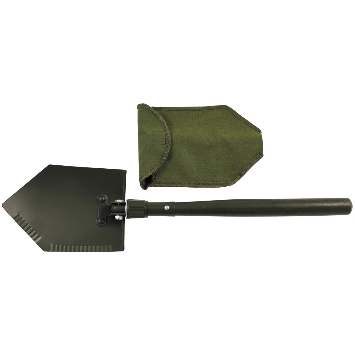 Der US Klappspaten ist aus oliv lackiertem Holzstiel gefertigt. Geliefert wird der Spaten in einer PVC Tasche mit Alice-Clips.
