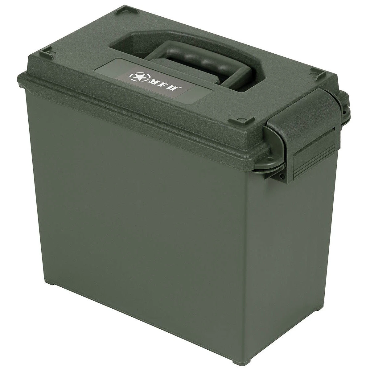Die robuste US Munitionskiste mit einer Größe von 37x21x33 cm aus stabilem Hartkunststoff in oliv für Cal. 50mm ist abschließbar. Durch die Gummiabdichtung ist die Kiste absolut wasserdicht. Ein Tragegriff sorgt für angenehmen Transport. Die Kiste wird sehr gerne von Air Soft Spielern verwendet. Aber auch als Werkzeugbox oder sonstige Aufbewahrungsbox ist die Kiste hervorragend geeignet.