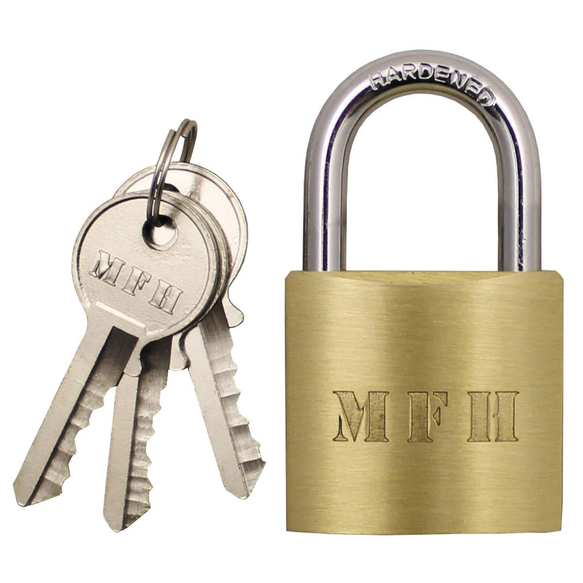 Hochwertiges Vorhänge Schloss aus Messing in der Grösse 6x4cm. Das Vorhängeschloss ist zum Sichern von Koffern, Kisten, Türen usw. geeignet. Die Lieferung erfolgt inkl. 3 Schlüssel.